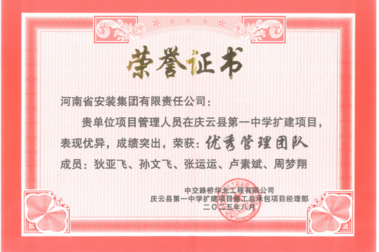 近日,由金屬結(jié)構(gòu)公司承建的慶云縣第一中學(xué)改擴(kuò)建項(xiàng)目獲得中交路橋華北工程公司“優(yōu)秀分包單位”及“優(yōu)秀管理團(tuán)隊(duì)”兩項(xiàng)榮譽(yù)稱號(hào),這不僅是對(duì)項(xiàng)目團(tuán)隊(duì)在質(zhì)量進(jìn)度、文明施工等管理的高度認(rèn)可,更是對(duì)河南安裝精誠(chéng)團(tuán)結(jié)、勇于擔(dān)當(dāng)之精神品質(zhì)的充分肯定。